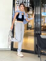 The 23FW Four Square Embroidery Logo Pants feature a four-square embroidery logo, soft fabric, elastic waistband, and functional side pockets. Ideal for everyday wear.