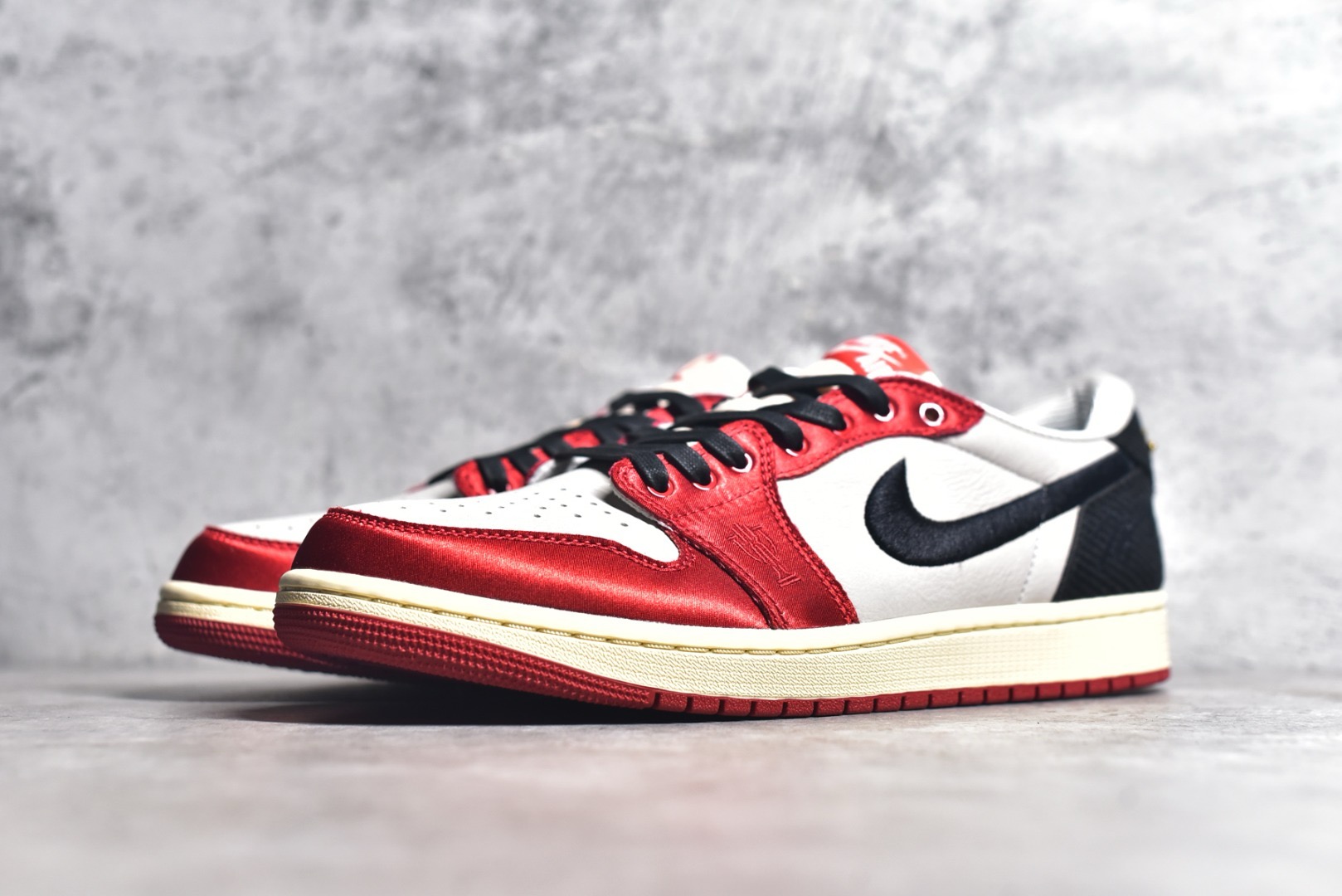The Air Jordan 1 Low Trophy Room features a premium leather upper in black with metallic gold accents, adorned with the Trophy Room logo and Jordan Brand’s “Wings” logo. With a cushioned midsole and durable rubber outsole, it offers comfort and traction for everyday wear. Exclusive and stylish, it’s a must-have addition to any sneaker collection.
