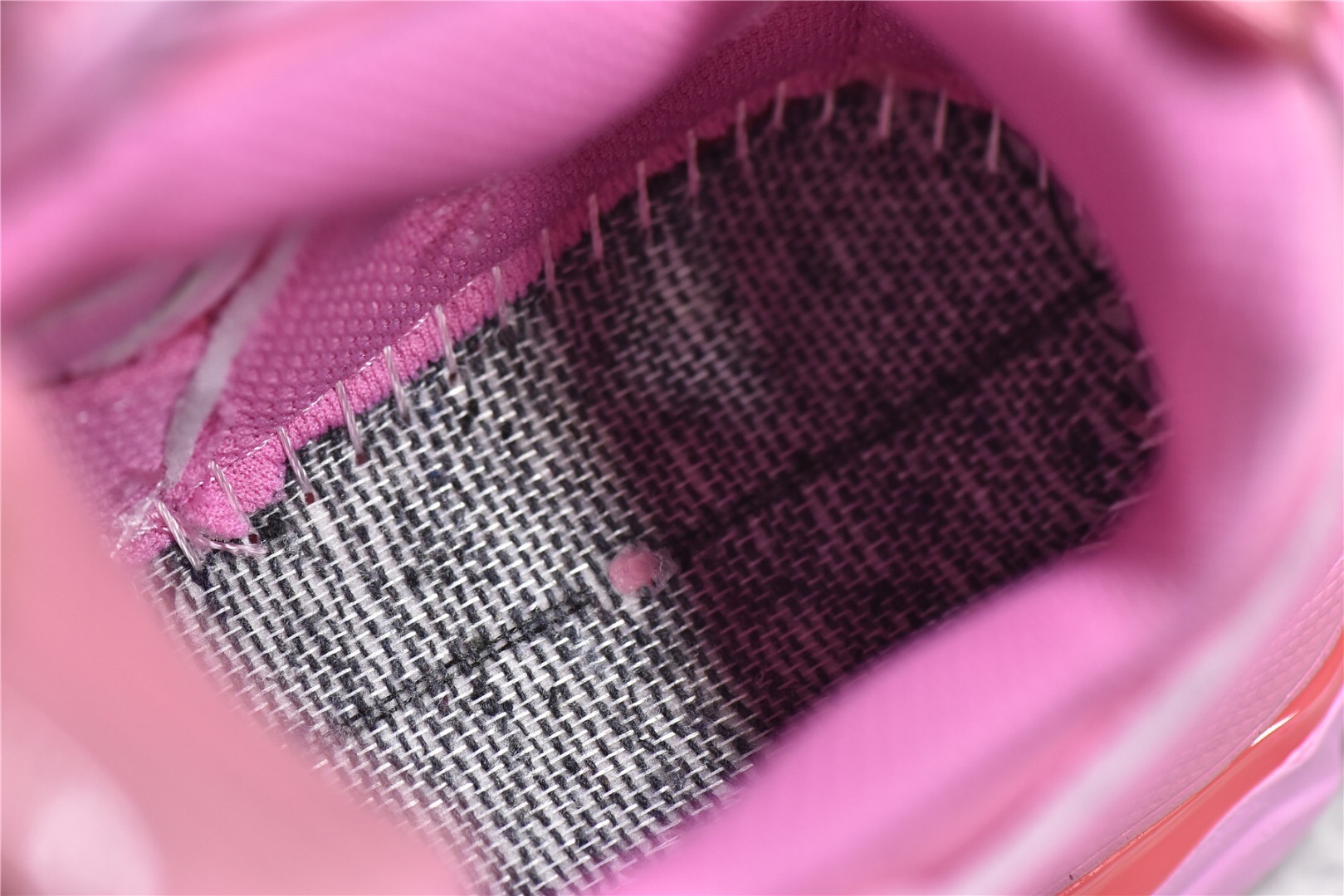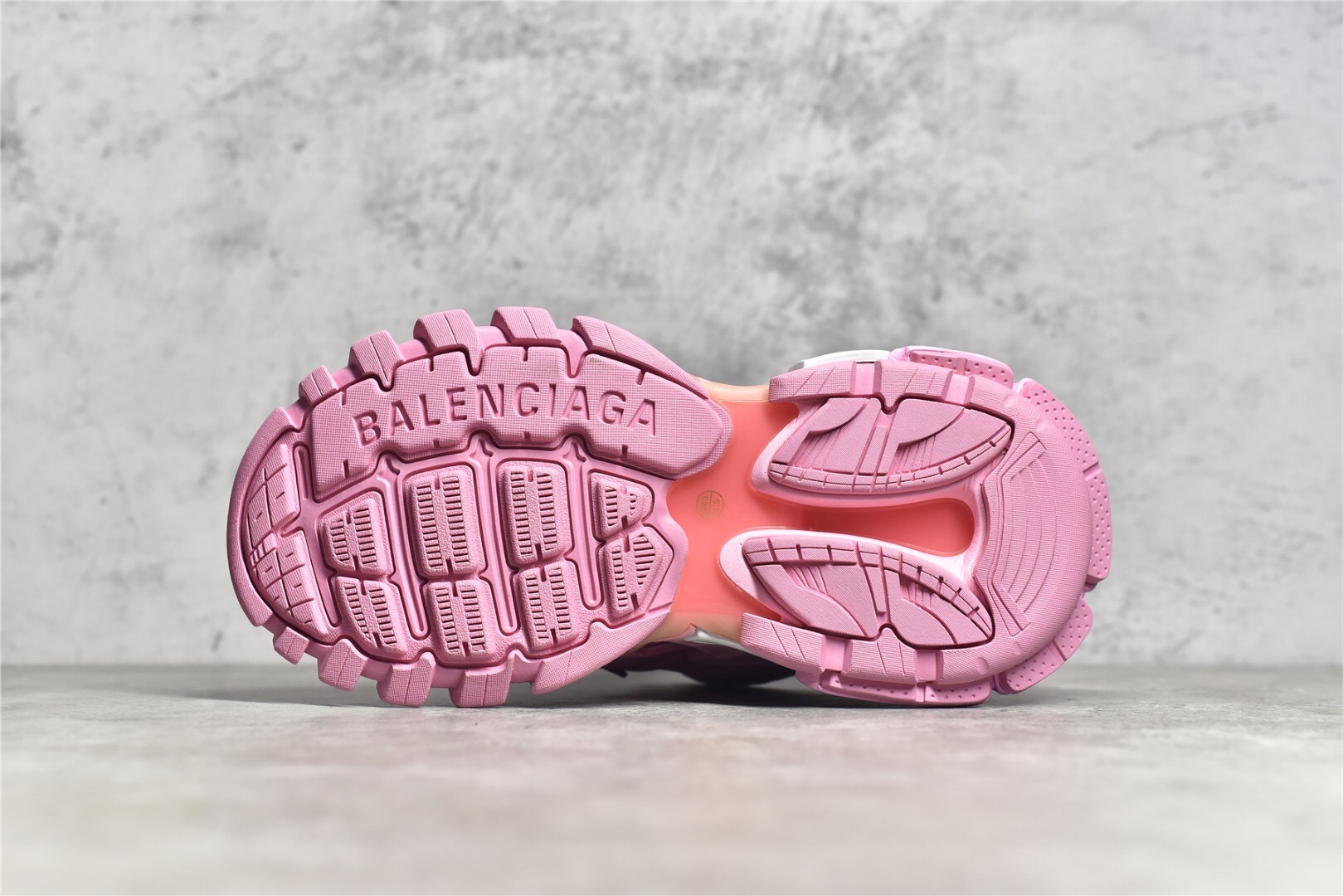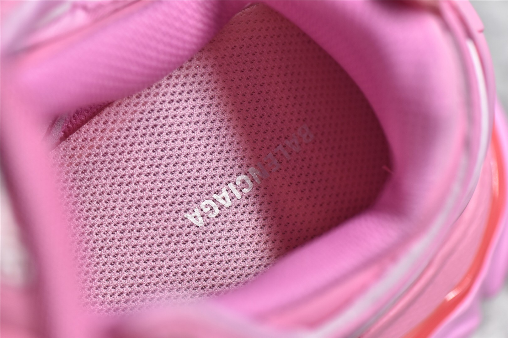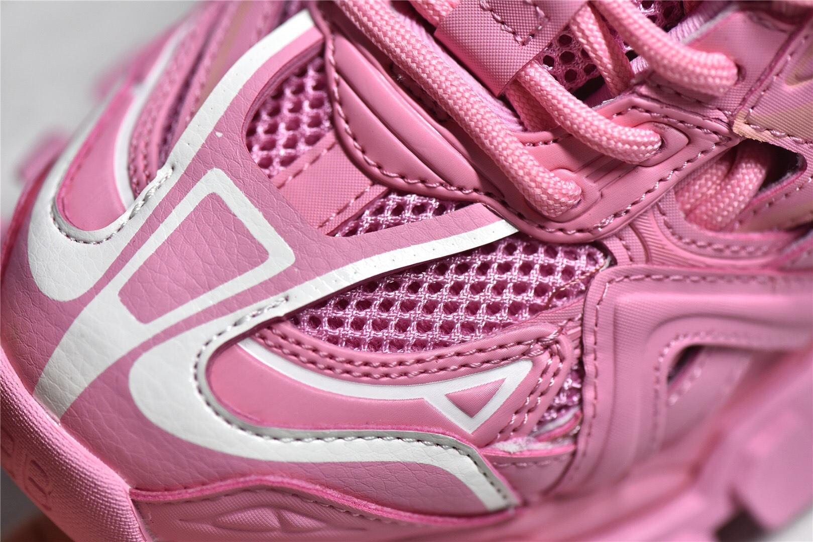 The Balenciaga Runner Sneaker in Pink features a breathable mesh upper, cushioned midsole, and durable rubber outsole, combining style with comfort for versatile wear.
