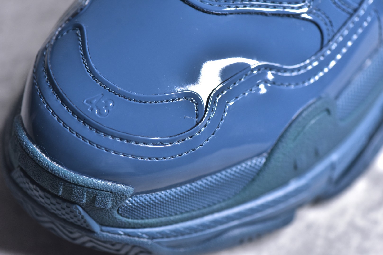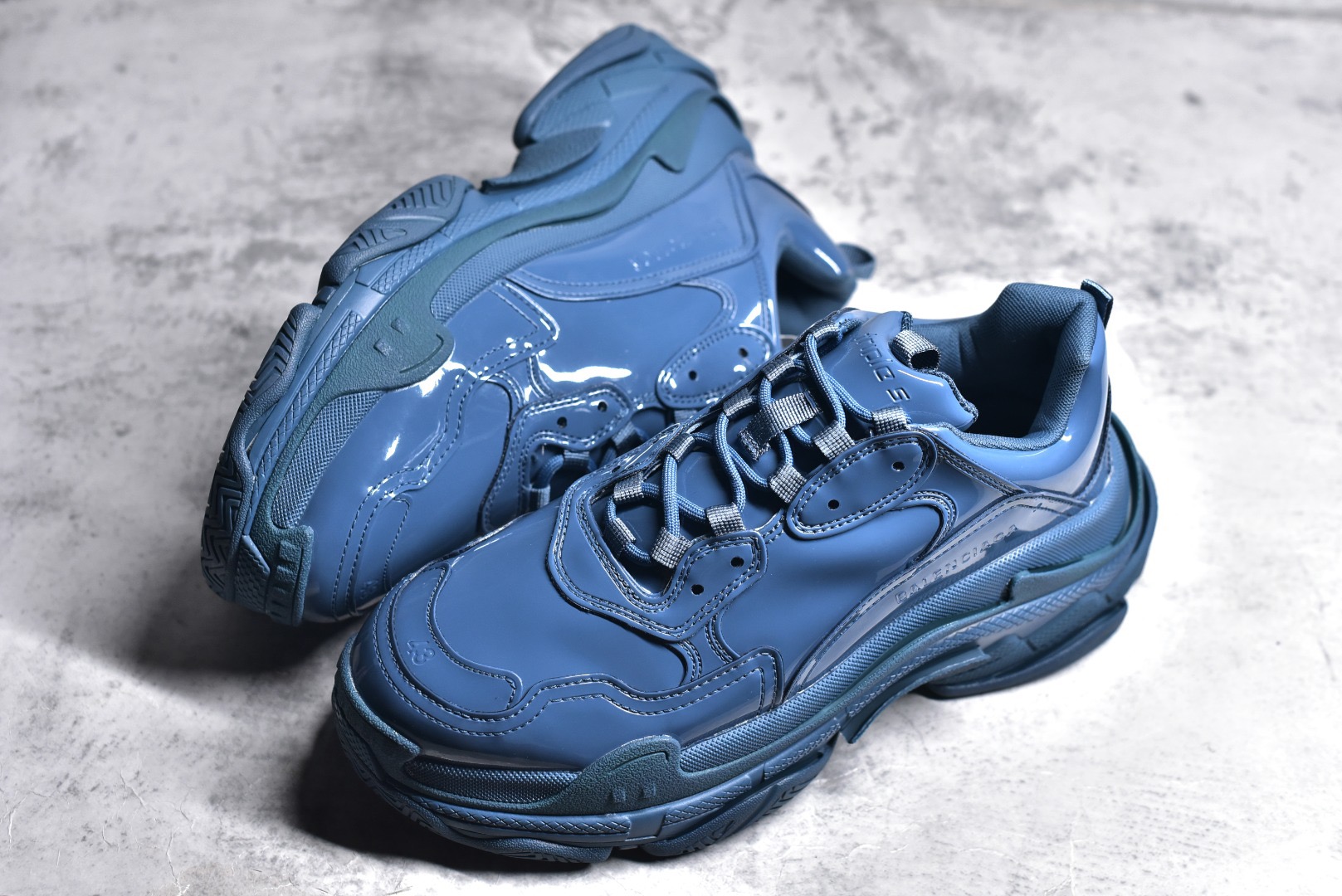 The Balenciaga Triple S in Light Blue Rubber features a sleek rubber upper with a multi-layered design and a chunky triple-stacked sole, combining modern materials with the classic Triple S aesthetic. Perfect for those who seek a stylish and versatile sneaker with a contemporary edge.