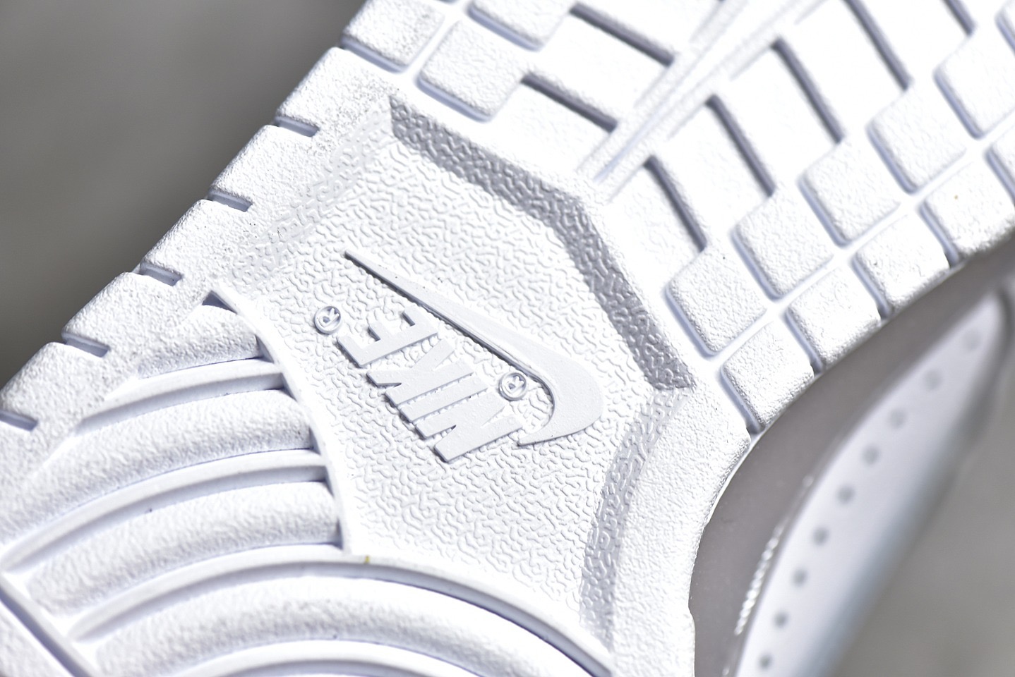 The Dunk High Slam Jam White Pure Platinum DA1639-100 features a clean white and Pure Platinum colorway, combining premium leather materials for a luxurious feel. This sneaker offers unique design elements like the upside-down Nike logo, Nike and Slam Jam branding, a padded tongue and collar, traditional foam midsole, and a durable rubber outsole for comfort and performance.