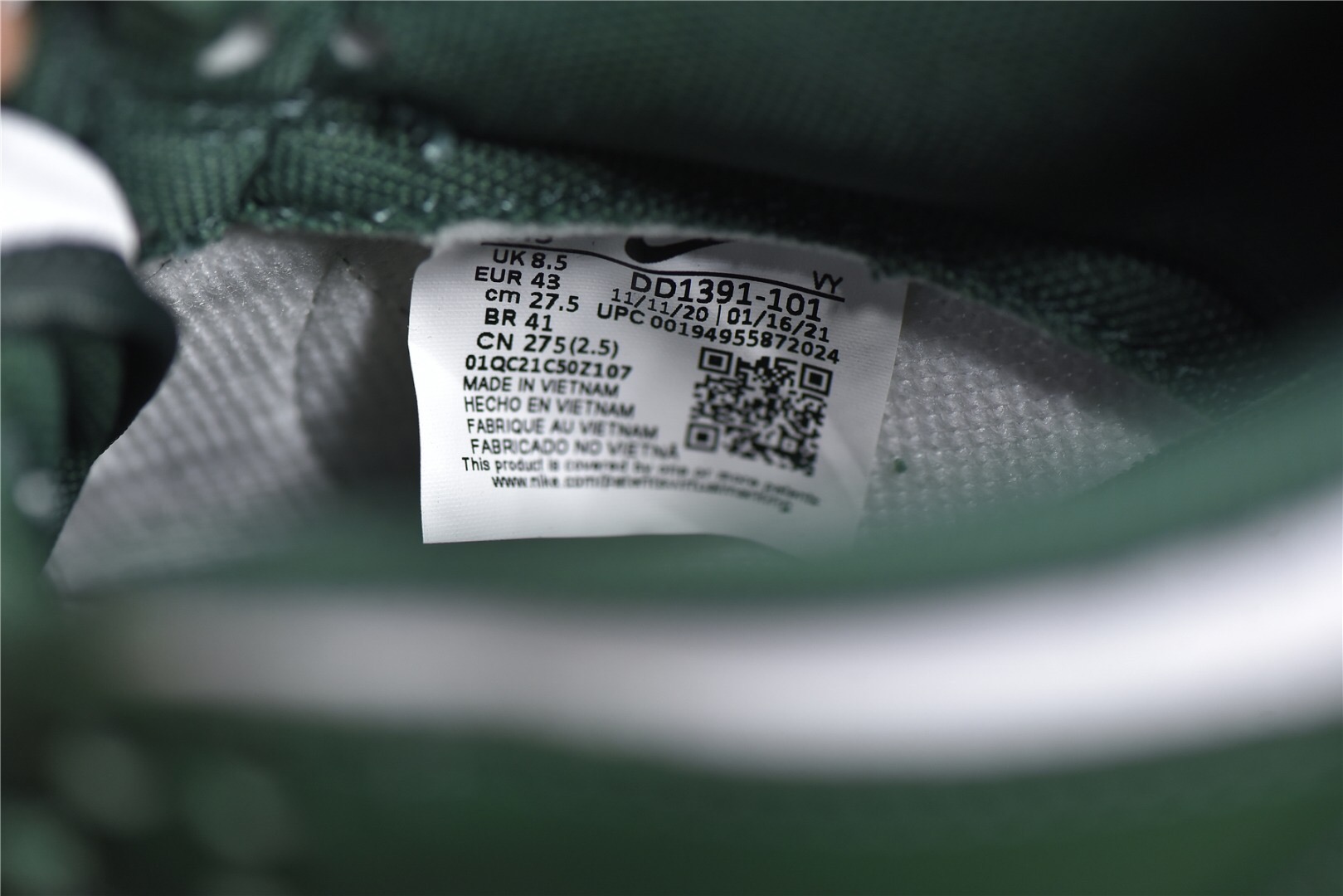 The Dunk Low Spartan Green DD1391-101 combines a Spartan Green colorway with premium leather materials for a classic and timeless look. This sneaker features Nike branding, a padded tongue and collar, traditional foam midsole, and a durable rubber outsole for comfort and everyday wear.