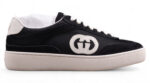 The Gucci White Suede Mesh Sneakers feature a white suede upper with breathable mesh panels. Includes a padded collar, cushioned insole, and durable rubber outsole. Ideal for versatile wear.