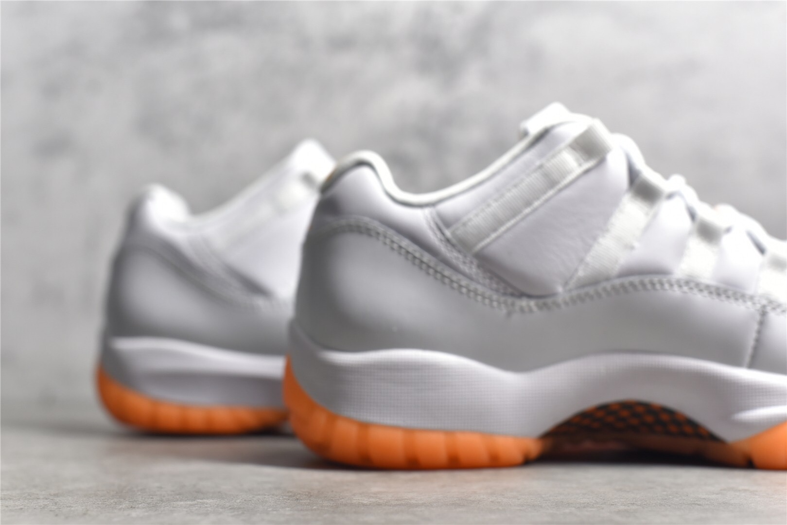 The Jordan 11 Retro Low “Bright Citrus” features a vibrant white and bright citrus orange colorway with patent leather mudguard, padded collar, responsive Air-Sole unit, and durable rubber outsole. A bold and energetic choice for sneaker enthusiasts seeking standout design and comfort.