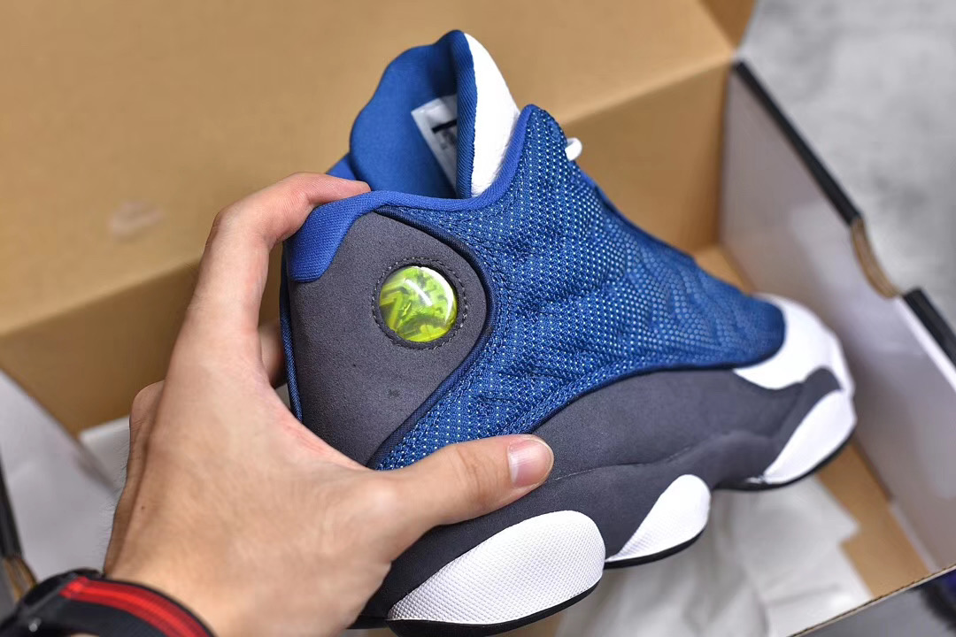 The Jordan 13 Retro AJ13-Navy Blue combines navy blue leather with suede accents for a classic look. Features breathable mesh overlays, padded collar, Zoom Air unit, and durable rubber outsole. Ideal for sneaker enthusiasts.