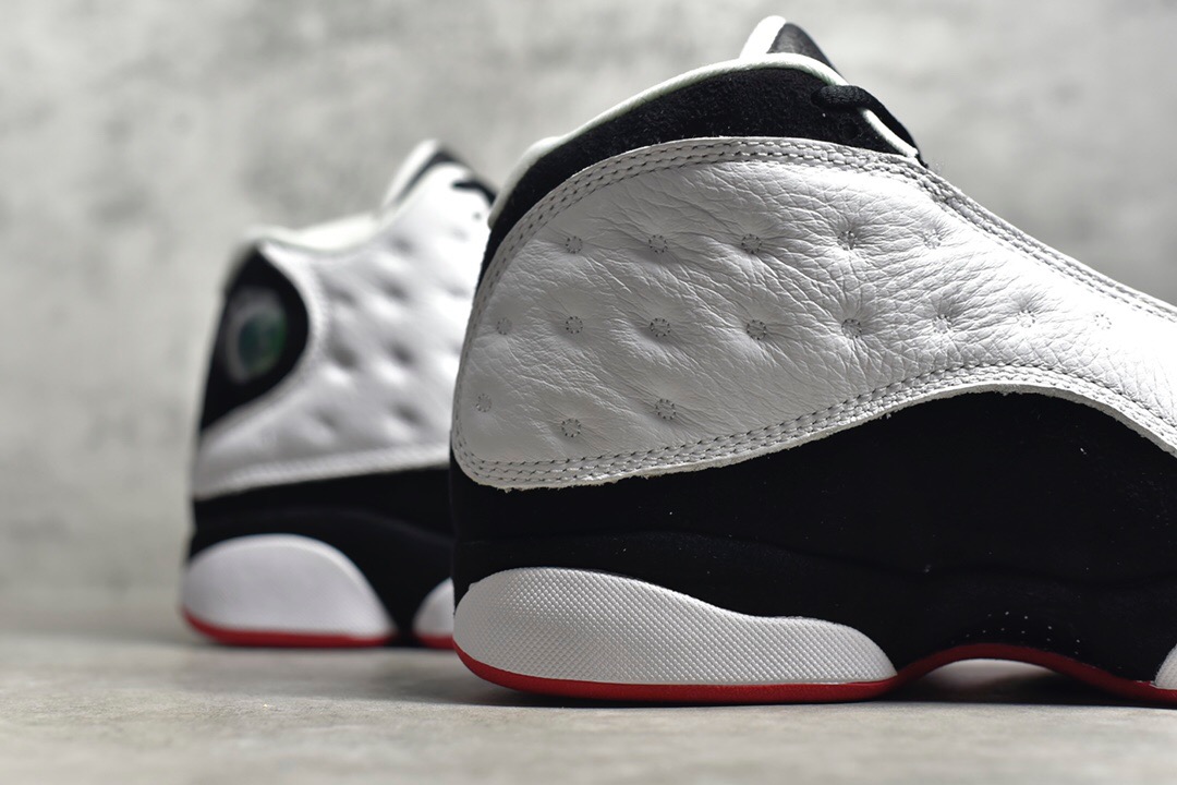 The Jordan 13 Retro AJ13-Panda combines black and white leather for a classic look. Features breathable mesh overlays, padded collar, Zoom Air unit, and durable rubber outsole. Ideal for sneaker enthusiasts.