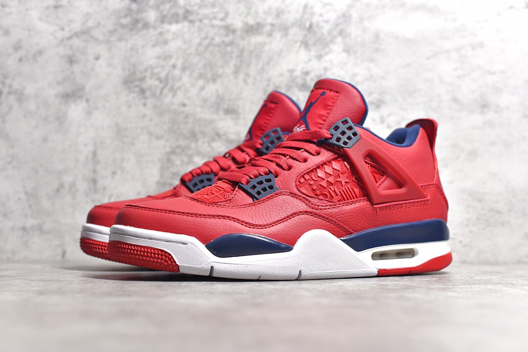The Jordan 4 FIBA celebrates international basketball with a rich red leather upper, intricate detailing, and premium craftsmanship. Features breathable mesh, padded collar, visible Air-Sole unit, and durable rubber outsole. Ideal for basketball fans and sneaker enthusiasts.