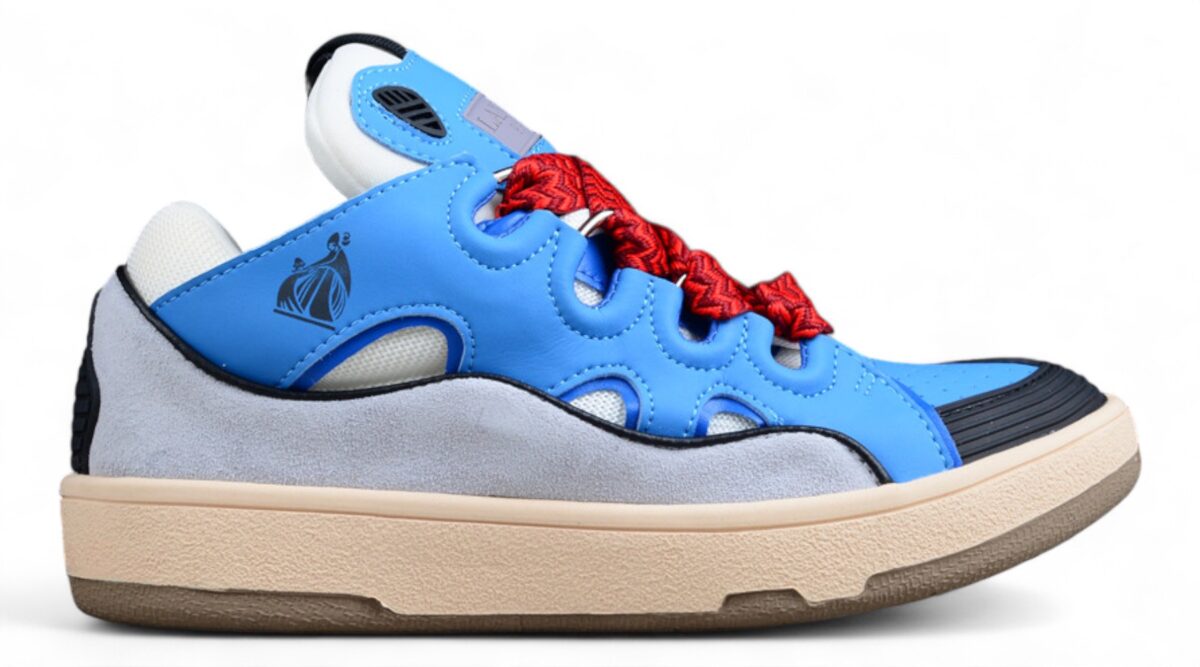 The Lanvin Curb Sneaker Shoes feature a high-quality leather upper with bold details. Includes oversized laces, padded collar, cushioned insole, and durable rubber outsole. Ideal for a unique blend of fashion and functionality.