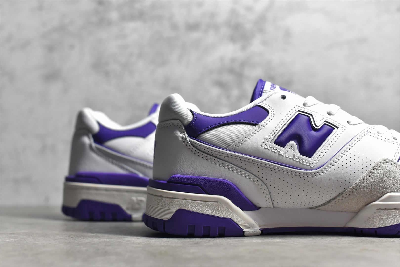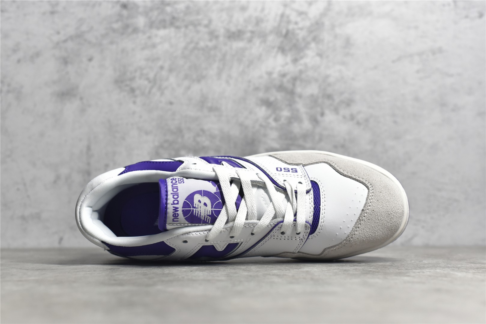 The NB BB550 007 combines white leather with black accents for a sleek look. Features perforated leather, padded collar, EVA midsole, and durable rubber outsole. Ideal for everyday wear.