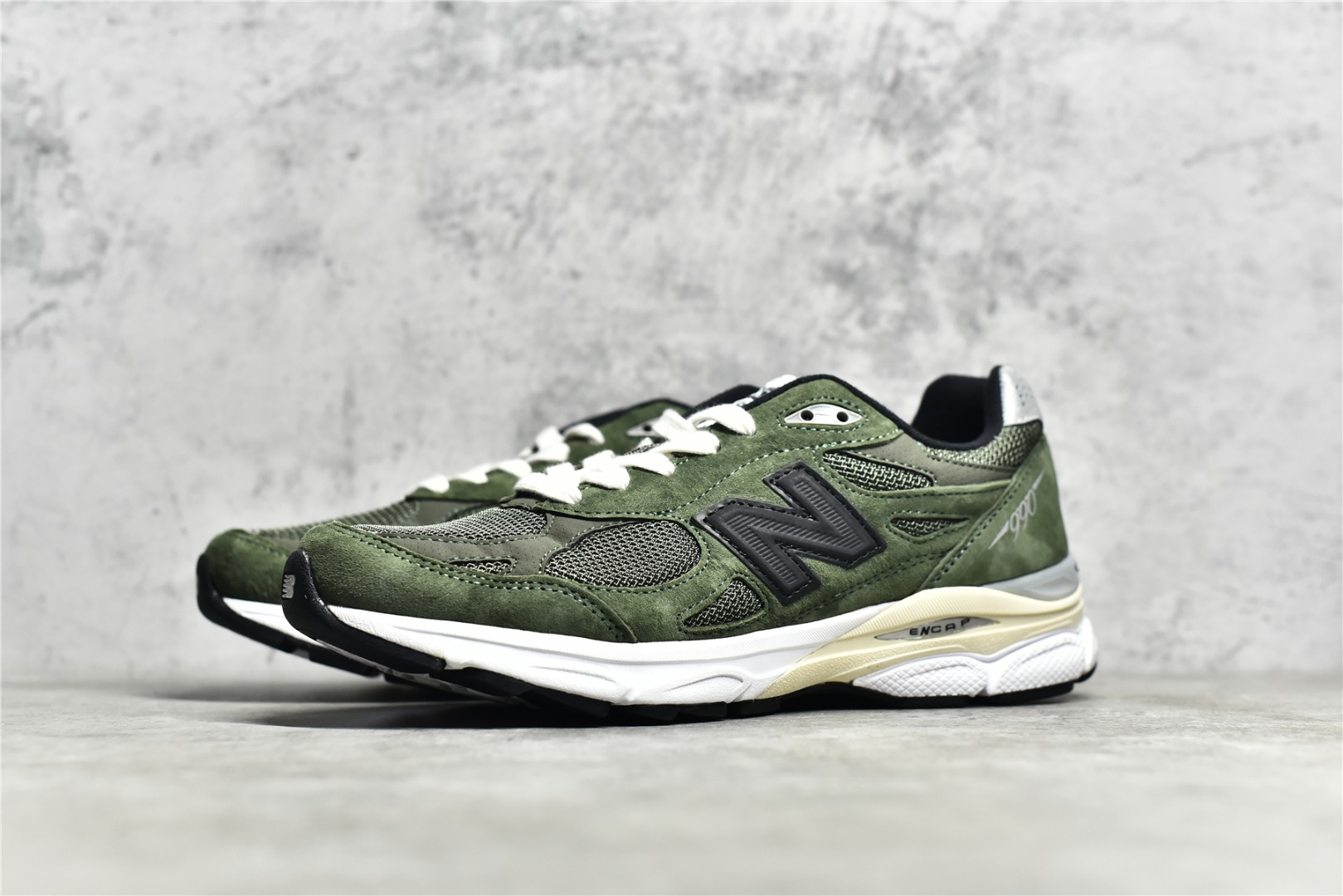 The NB JJJJound x NB 990V3 combines white leather with black accents for a sleek look. Features perforated leather, padded collar, EVA midsole, and durable rubber outsole. Ideal for everyday wear.