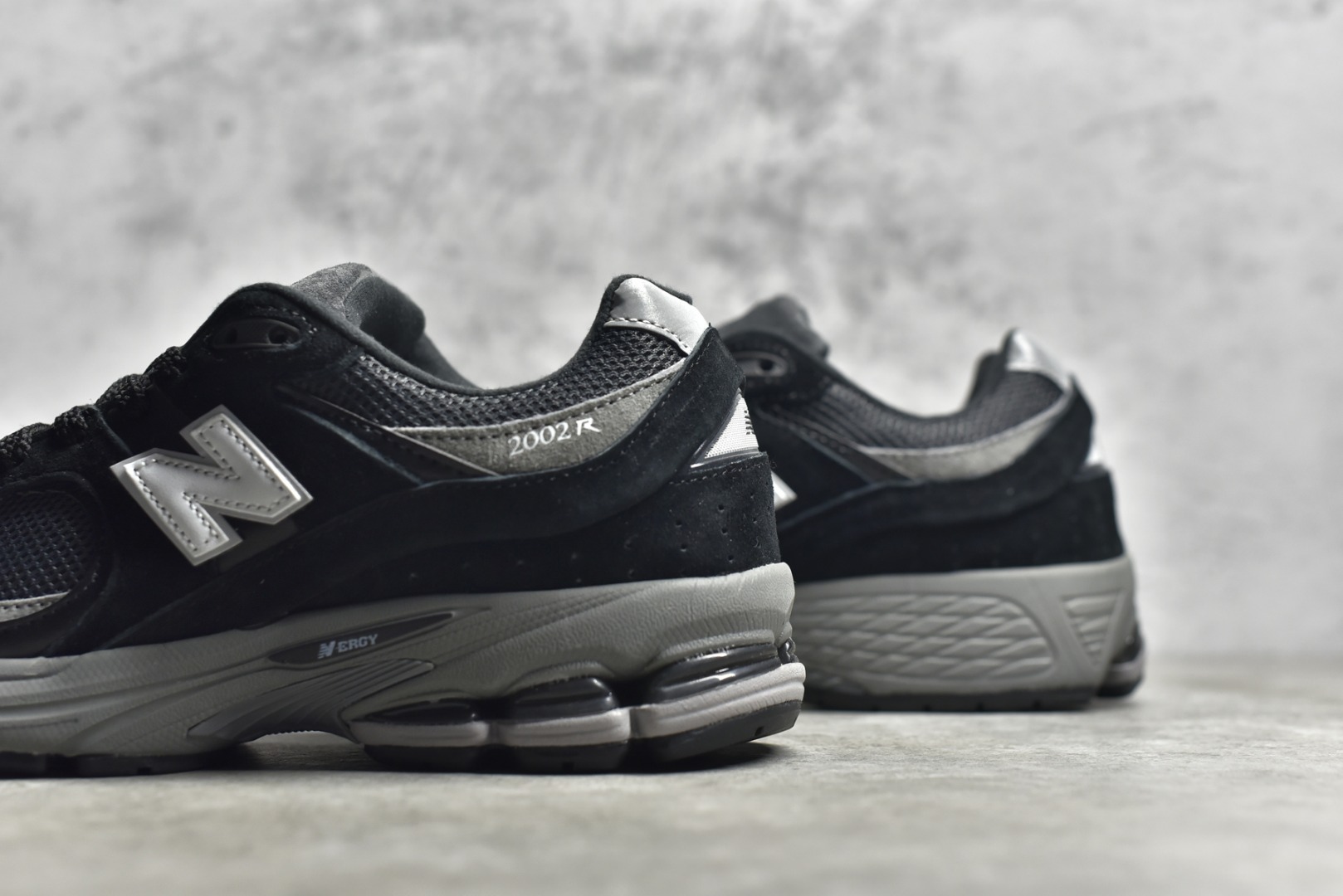 The NB WL2002 combines white leather with black accents for a sleek look. Features perforated leather, padded collar, EVA midsole, and durable rubber outsole. Ideal for everyday wear.