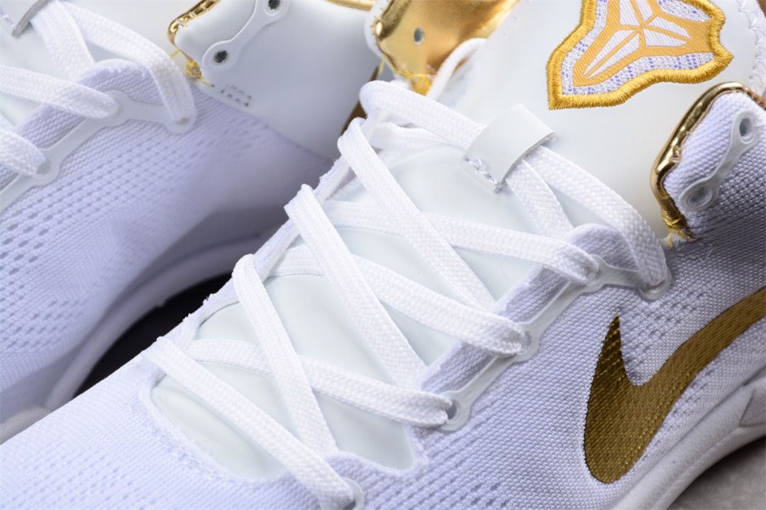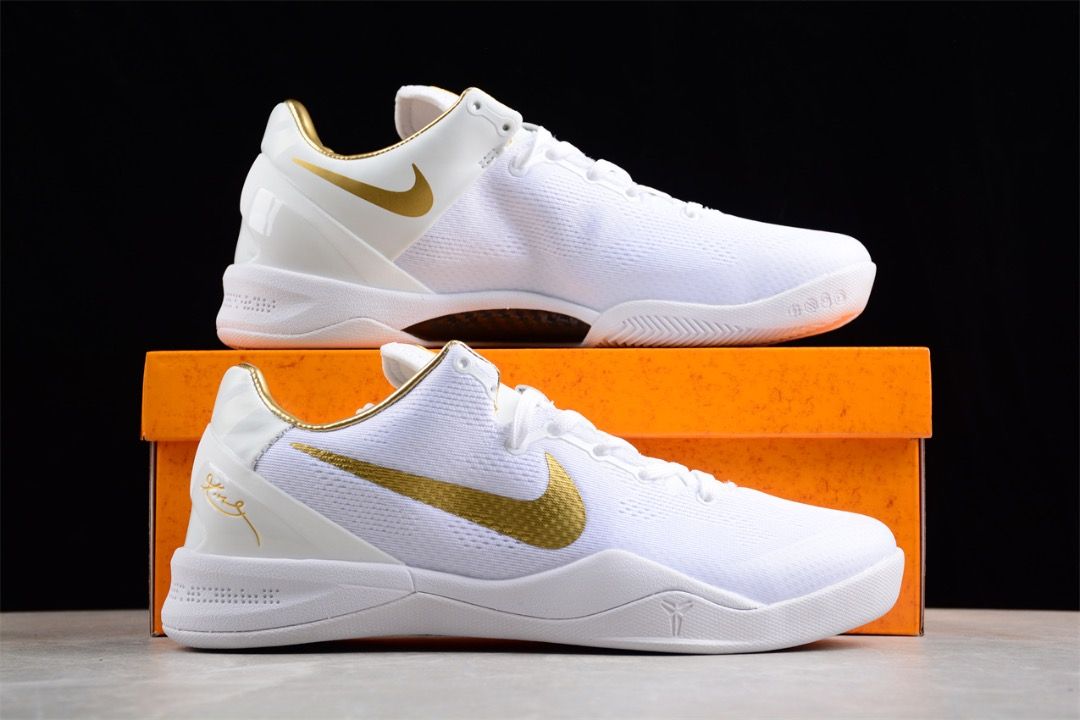 The Nike Kobe 8 Protro White Metallic Gold basketball shoes feature a stylish design with white and metallic gold accents, lightweight support, responsive cushioning, and durable traction. Perfect for Kobe fans and basketball enthusiasts looking for performance and style on the court.