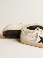 Super-Star sneakers with a black nubuck star and silver leather heel tab offer bold style and comfort. Ideal for everyday wear with a durable rubber sole.